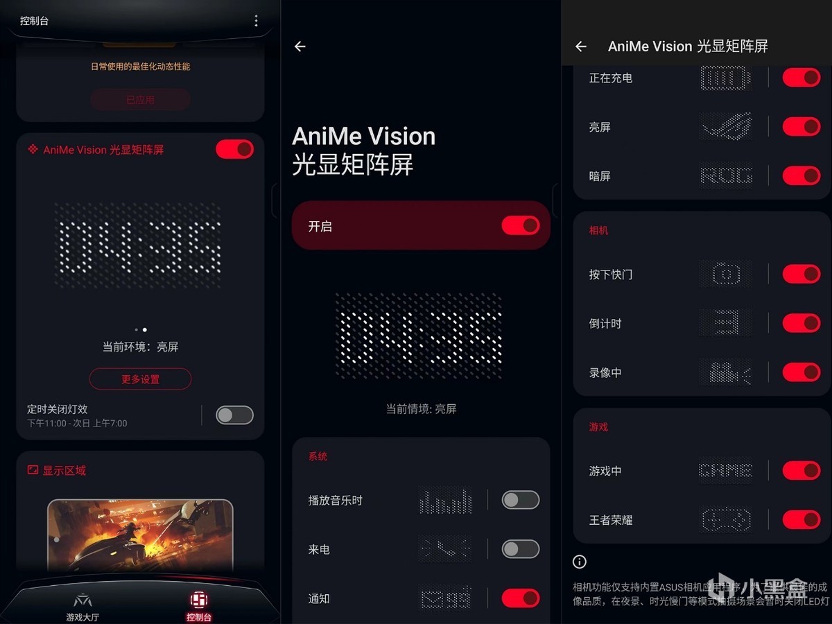 而设置了AniMe Vision光显矩阵屏的方式很简单,只要在智控中心的控制台标签下找到AniMe Vision光显矩阵屏设置,就能直接开启或者关闭。