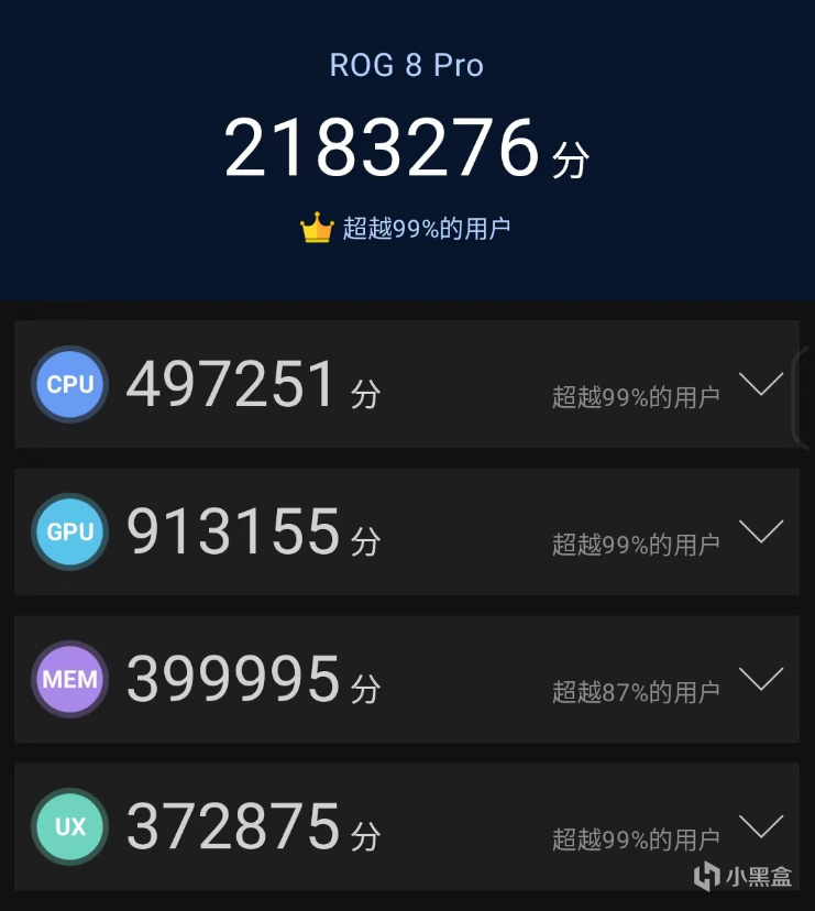 充足的散热给性能释放给予了足够的支持,也得益于第三代骁龙8本身强劲的表现,配合24GB LPDDR5X-8533和1TB UFS 4.0容量,再配合ROG的X模式性能释放。在测试环境下,ROG 8 Pro的表现相当亮眼。