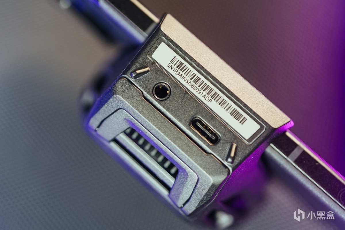 这时候你就拥有了一个官方出品的ROG 8 Pro手机支架,带AURA RGB功能,搭配左右2个实体按键代替手机边框AirTriggers肩键以增加持握感和手感,同时也让侧边拥有了USB-C充电接口和3.5mm音频接口,完全是ROG 8 Pro的扩展坞+散热增强配件,相当拉风。