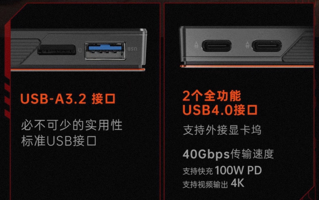 接口方面:除了1個USB3.2的A口還有極爲先進的3.5mm音頻接口,2個USB-C 4.0全功能接口和1個Oculink PCle4.0x4接口,2個HDMI2.1接口、2個DP接口,還有一個TF卡槽和一個M.2 PCIe 3.0接口,可插入M.2 2280固態硬盤,最大容量支持8TB。