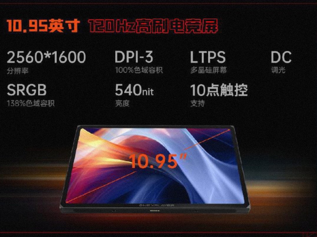 屏幕方面:壹號遊俠X1採用的是一塊10.95英寸120Hz的16:10 LCD觸控屏(LTPS),分辨率爲2560x1600,峯值亮度540nit,色域方面爲DPI-3 100%、SRGB 138%,DC調光,支持4096級壓感的手寫筆和十點觸控。