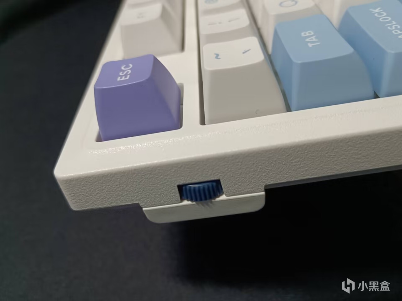 键盘左侧有一个旋钮,不过不好使,很小,紧实,两格触发,触发一次就是10音量,这谁遭得住啊,希望杜伽能更新下固件,这个音量走的太多了。