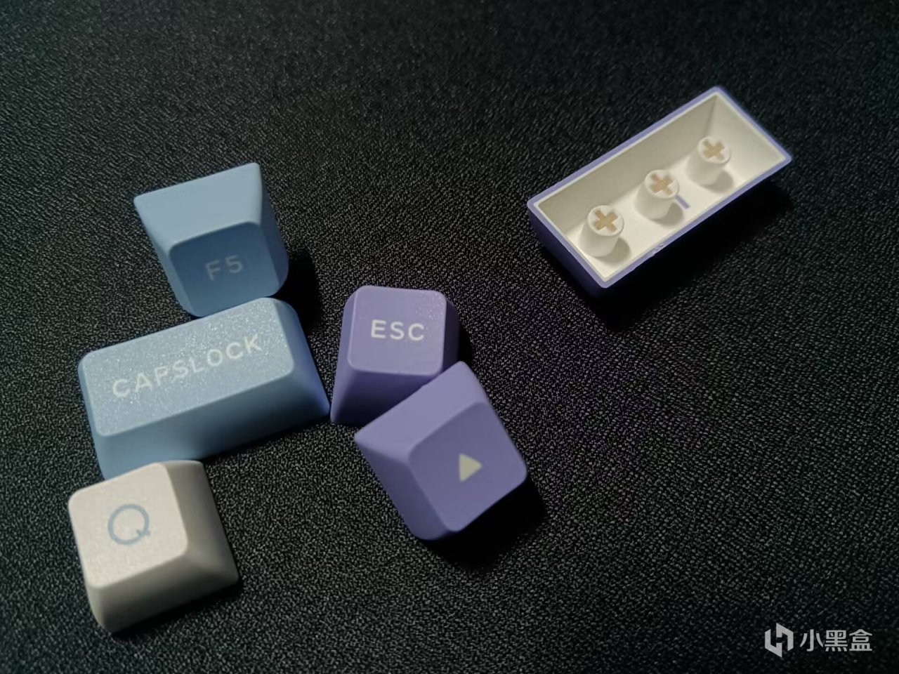 键帽方面,整体是一个三拼色,KSA高度球帽,材质是PBT,耐磨不打油,双色注塑工艺,字符不易磨损,表面比较细腻。