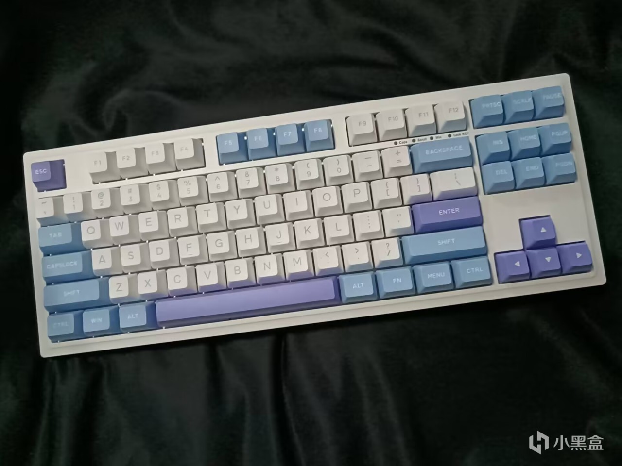 首先这款键盘是87配列,也是一种很常见的配列了,也就是把100%配列右侧那一块切掉,当然了,依旧是有人不适应,常用的功能键都是保留了的,虽然现在占的空间和98配列差不多,但是现在还是有很多人倾向于选择87配列。