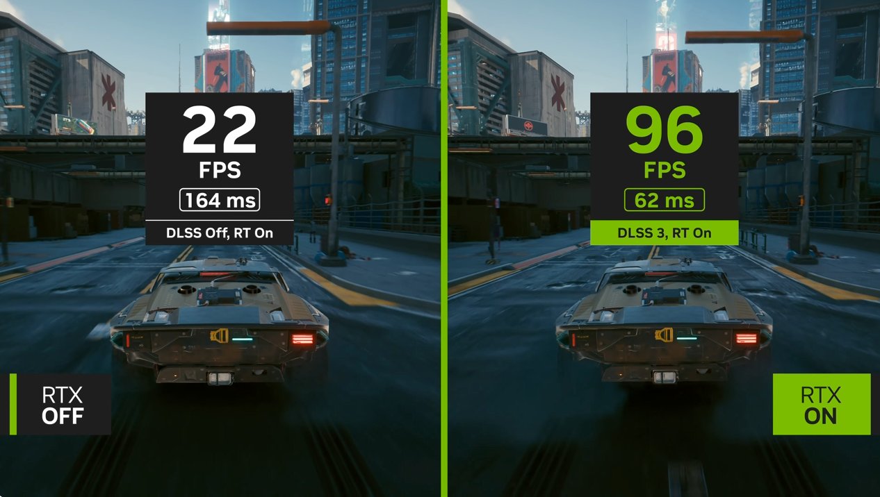 这还没完!因为接下来的DLSS 3.0更是畜生,这一代又额外增加了“帧生成”技术,以2077为例,理想情况下画质不变,帧数居然可以翻4倍。。。然后我手动去搜了一堆大佬实测结果,大多居然也能有2~3倍的涨幅,恐怖如斯。