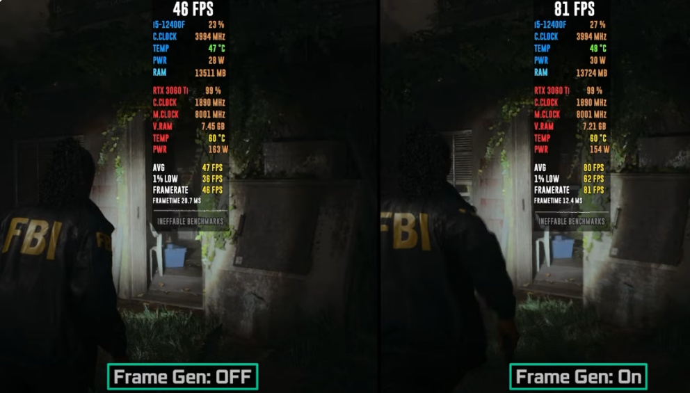 也就是说所有RTX 20、30系的N卡用户,现在可以在所有支持DLSS 3.0的游戏里,体验到FSR 3.0的帧生成技术了,并且有外网大佬一口气测了11款游戏,在画质没有明显下降的情况下,帧率平均上涨了50%~100%,可以说是非常出色了!