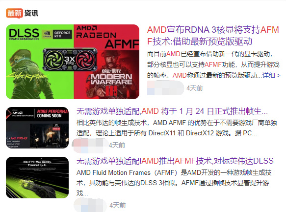 而且极其“巧合”的是,就在前两天AMD突然官宣,会在本月24日把一项名为AFMF的帧生成技术集成到正式版的显卡驱动中,届时所有A卡玩家升级驱动的时候就可以直接免费解锁这个功能。没错你猜对了,这个所谓的AFMF技术,其内核就是开源的FSR 3.0……结合上文介绍的几位大佬发MOD的时间,我只能说AMD是真狠啊,不给老黄一点喘气的机会。