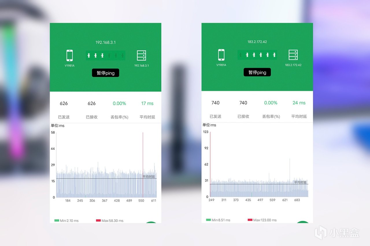 无线网络的传输速度是一方面,连接稳定性才是影响游戏的关键,毕竟谁也不想出现网络图标变红或者等待连接的画面出现,最后是测试无线路由器的传输稳定性,拿着手机在屋内游走十分钟,实测连接网络的平均时延为24ms,均没有任何丢包的情况。