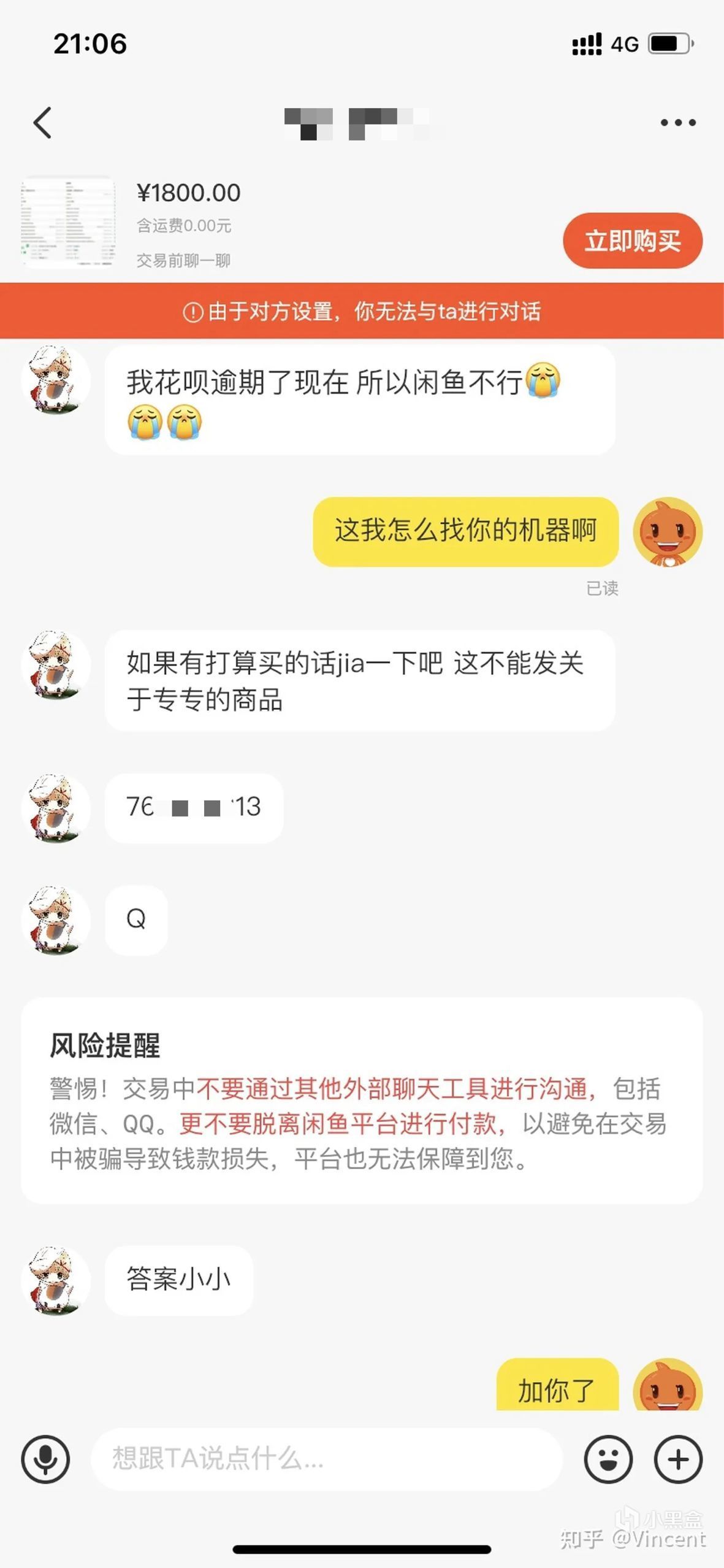 其次是平台外欺诈,就是想方设法把你诱导到其他平台进行交易,因为其他平台上的交易不受闲鱼保护,所以大家记住一个原则,不管在聊什么,都不要脱离闲鱼平台;