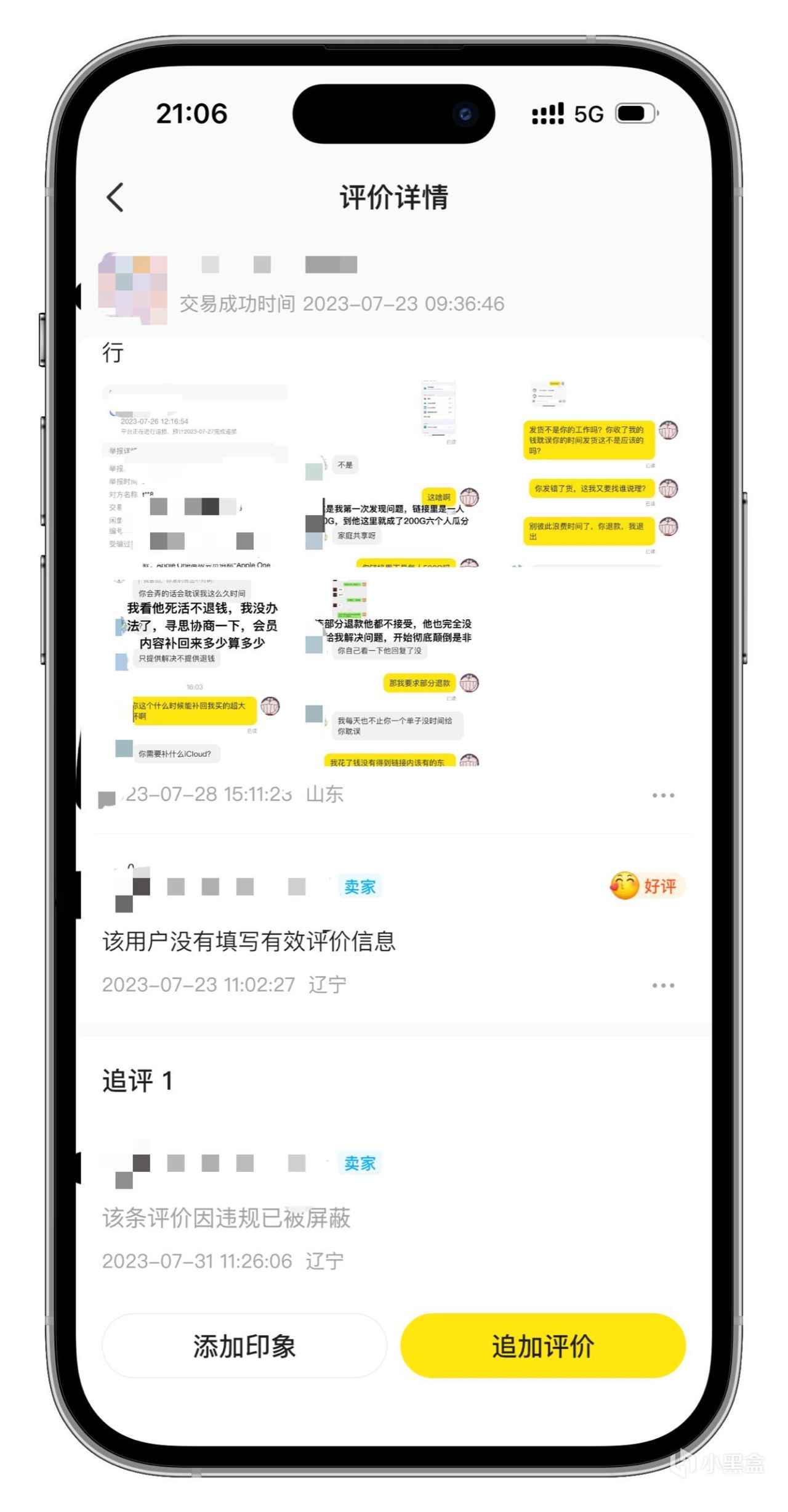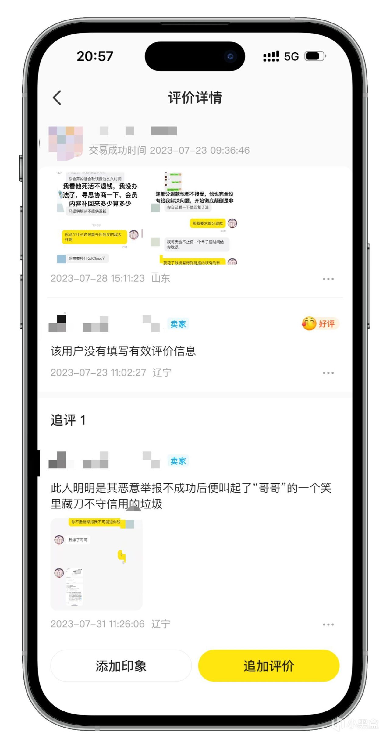 关于交易评价的违规行为就相对来说隐蔽一些,因为闲鱼默认是没有追评提醒的。商家如果在你的交易评价追评对你进行辱骂诬陷,你是不知道的。