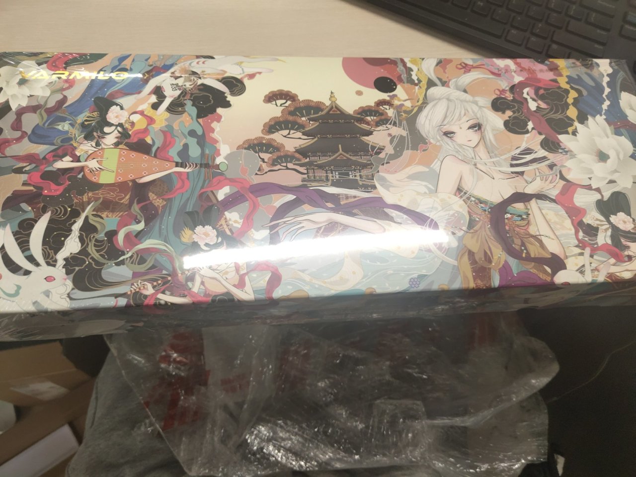 这里吐槽一下这个防尘罩,这个防尘罩还是老款模具的防尘罩,出线口在右上角,是当时的miniUSB用的,这都换了Type-C多少年了,还舍不得重新开个模,关键是这罩子套这个键盘都有点套不上,大小都不合适,这可是一千六的键盘啊。