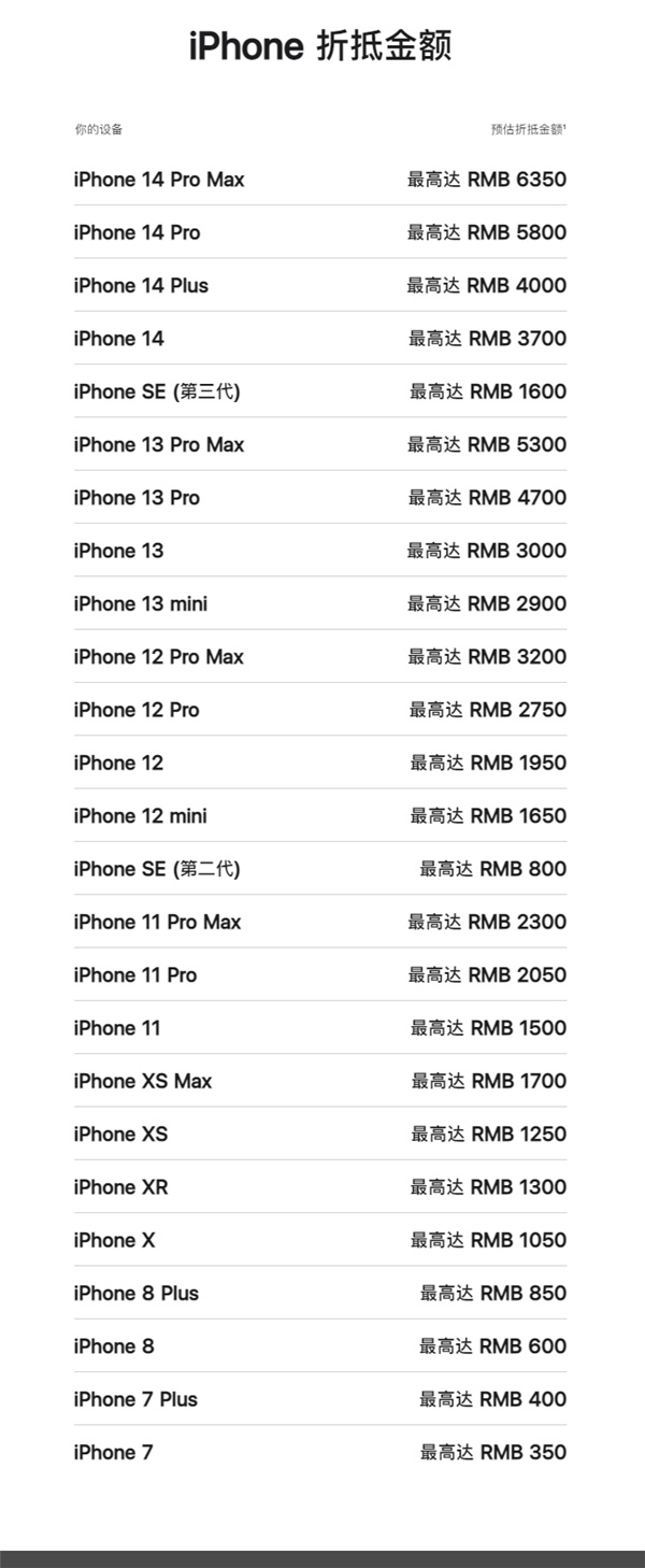 iPhone 13 Pro Max、iPhone 13 Pro、iPhone 12 Pro Max等机型的折抵金额也有所下降。