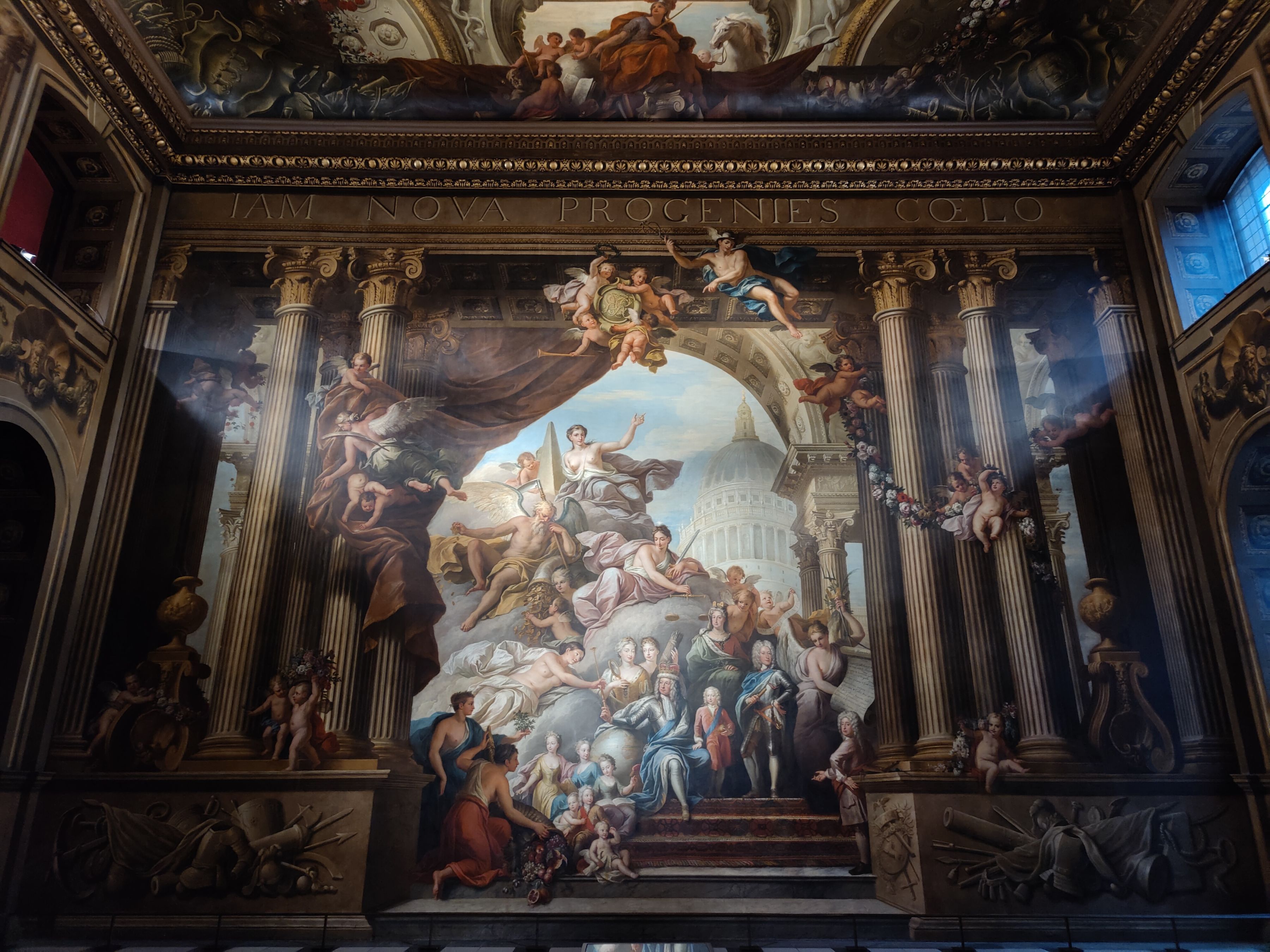 如今,這裏已經變成舊海軍學院了,作爲一個景點,這裏最著名的地方當屬Painted Hall!如此優雅華麗的巴洛克建築誰看了不愛