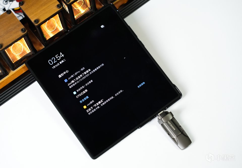 比如我自己的折叠屏手机vivo Fold 2,打开OTG功能就很轻松的识别到U盘,可通过文件管理读取到U盘中的文件等信息。