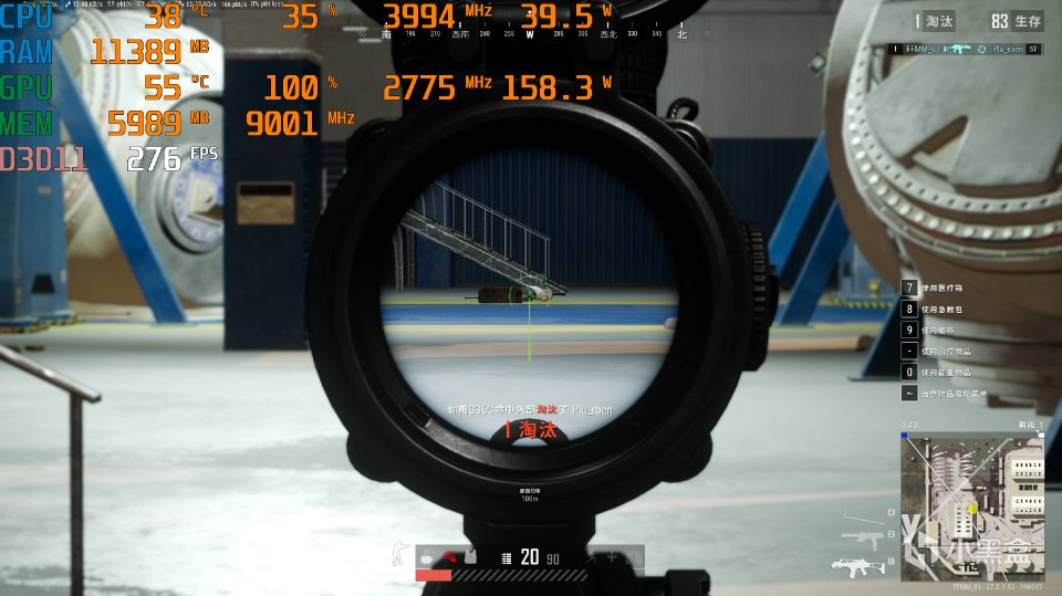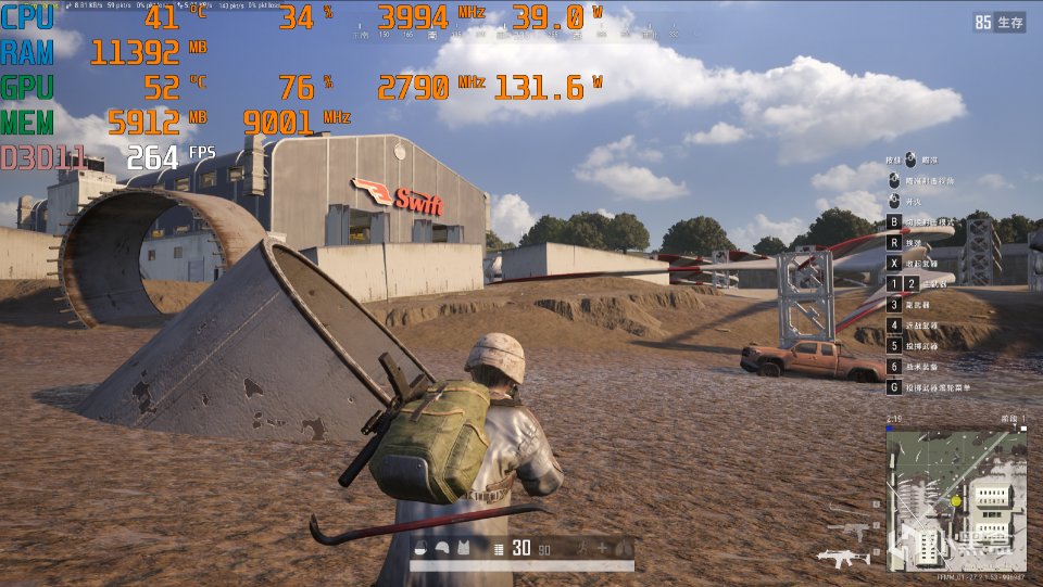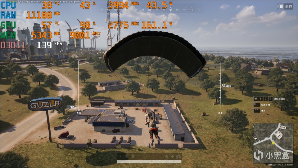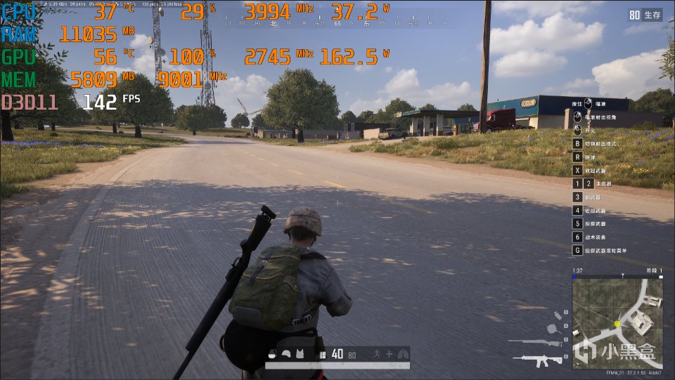 《绝地求生》2K分辨率+最高画质,100%渲染,游戏帧数保持125~140FPS之间。