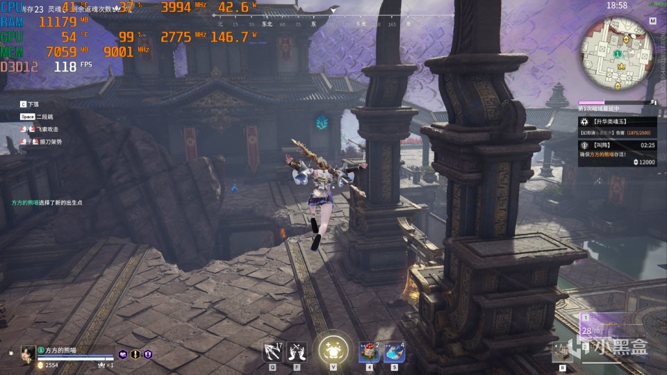 如果将设置改成2K分辨率+极限画质+DLSS 3.5超级性能+超级光追+关闭路径追踪,游戏帧数则会翻倍,达到100FPS以上。