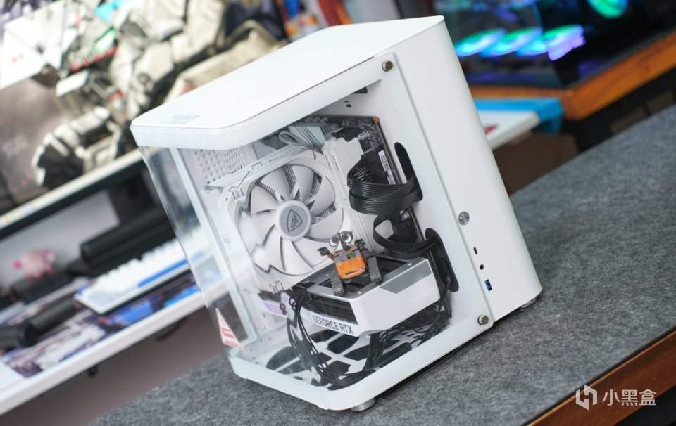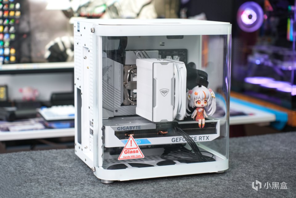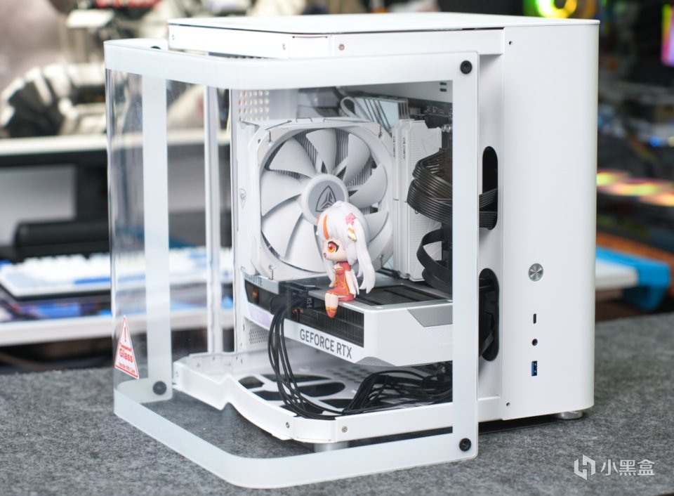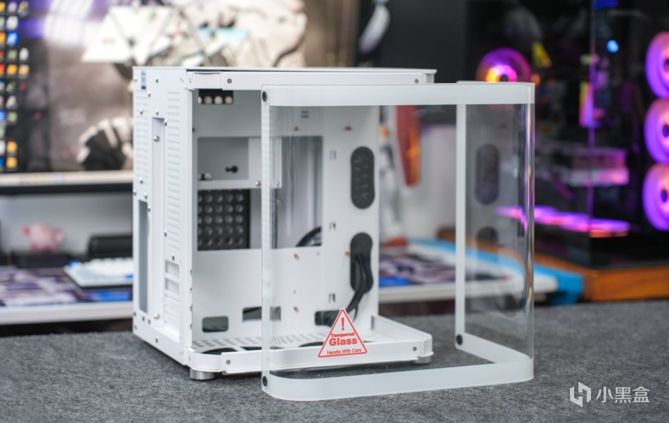 机箱用的是乔思伯TK-1,该机箱最大的特点就是纯白+全景侧透设计,并且整个面板是采用热弯玻璃工艺,没有立柱加持,可以带来更加纯粹的视觉观感。