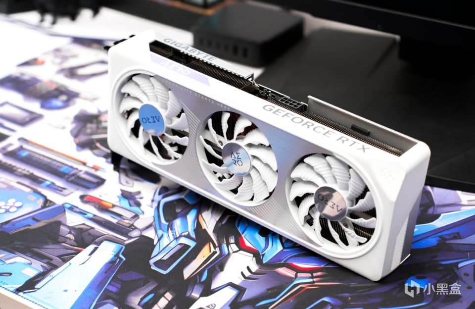 该显卡作为这台纯白主机价格最高的产品,除了颜值高,整个散热系统也非常不错,搭载了三个8cm风扇加持的风之力散热系统,其中相邻的风扇的旋转方向各不相同,形成正反风道强化散热效率;并且风扇支持3D智能启停技术,在低负载下停止转动,延长风扇寿命的同时也降低的噪音。