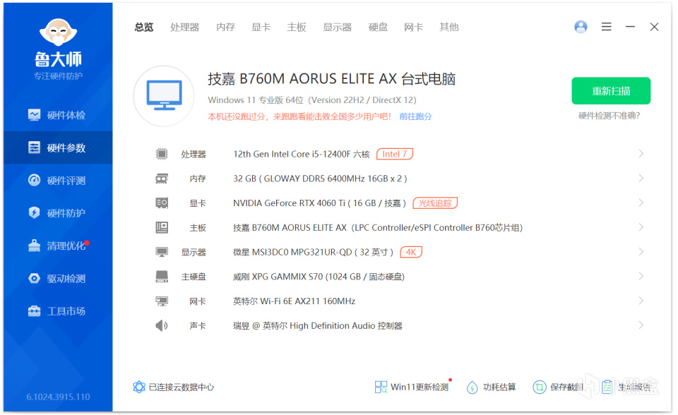 显卡:技嘉RTX 4060 Ti AERO OC 16GB