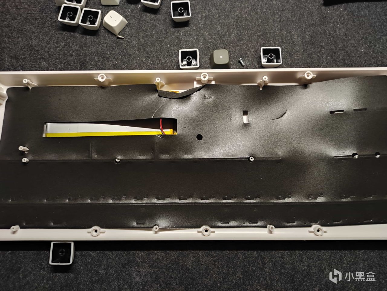 这款键盘拆起来并不费力,首先拧掉下面的数个螺丝,即可拆卸下上盖。