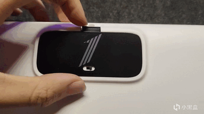而键盘的背面中间的黑色铭牌也是磁吸上去的,拆卸之后可以看到下面隐藏的2.4g接收器,拿开接收器下面则是键盘的type-c接口。(主打一个捉迷藏)