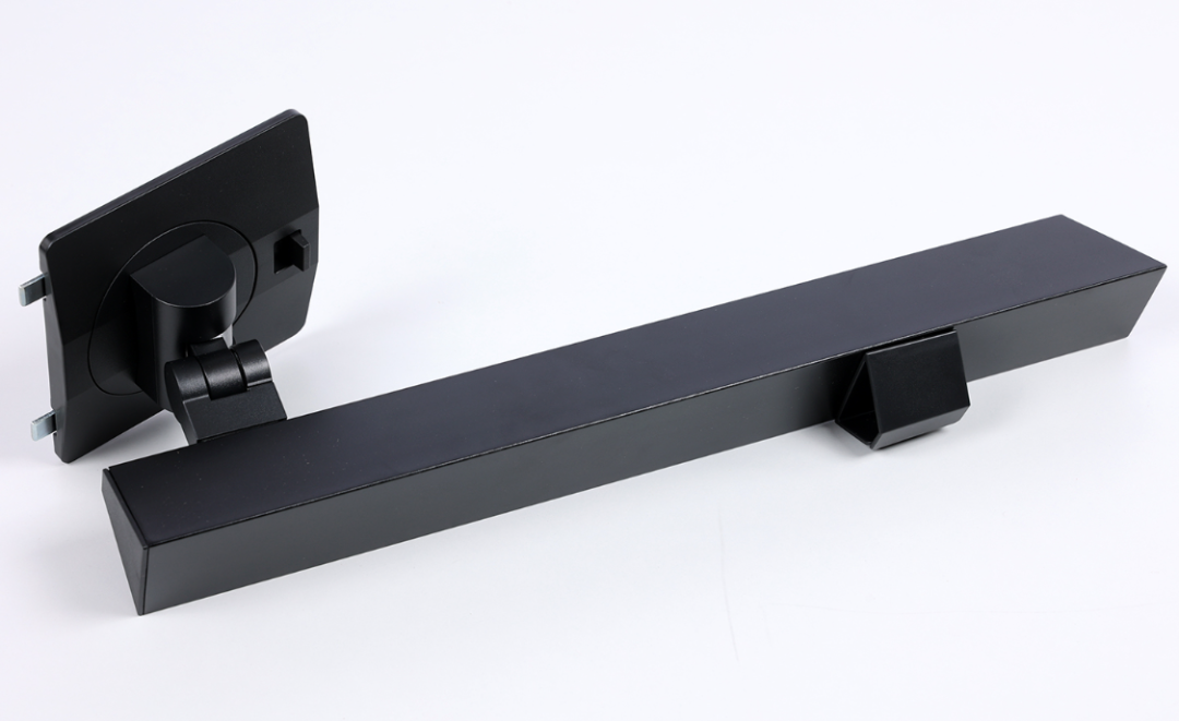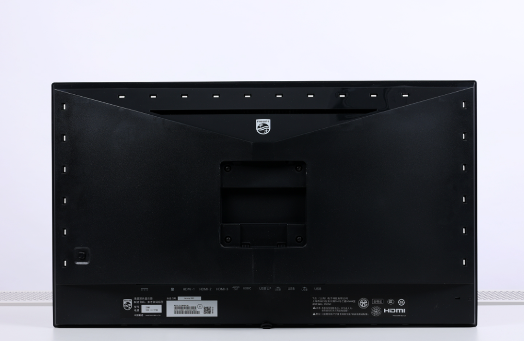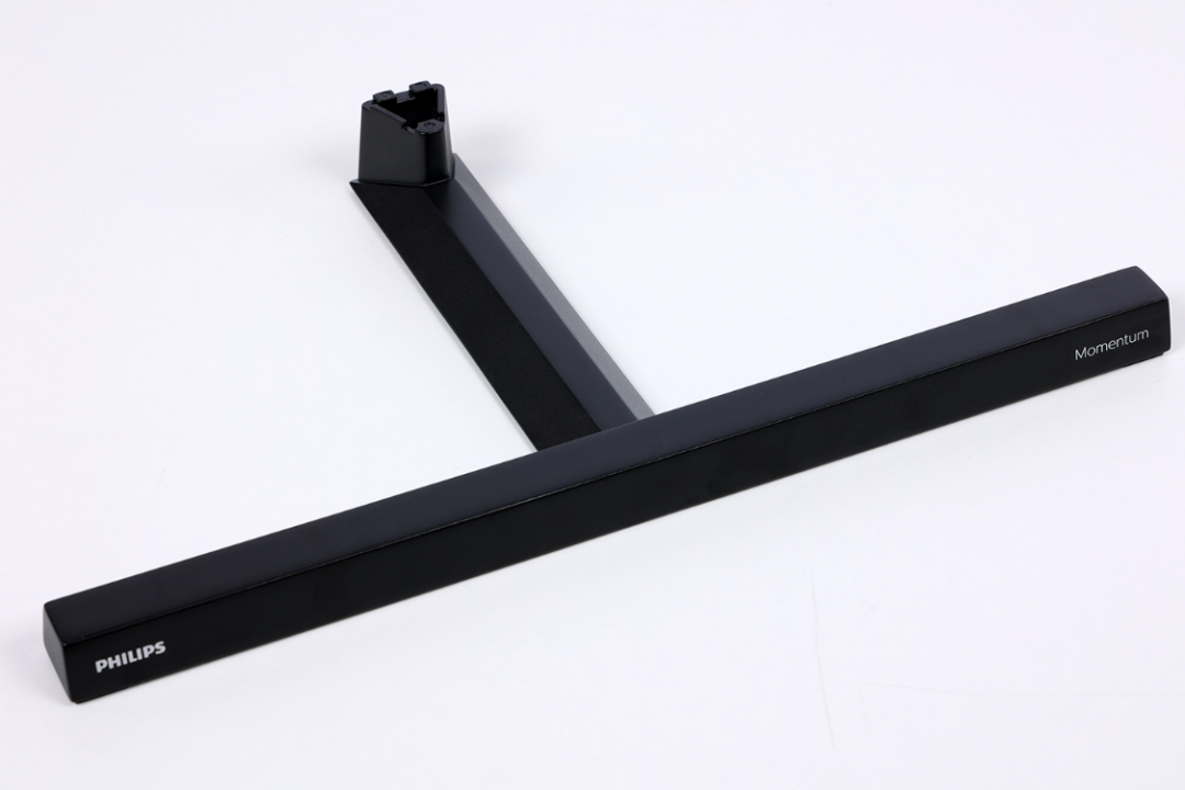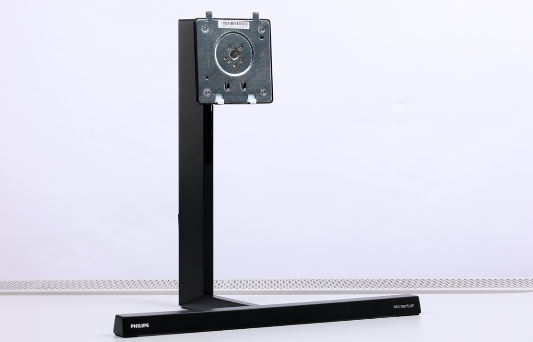 高强度结构钢材质支架和底座,用料扎实,上手分量很足。风格偏简约,表面采用了阳极喷砂表面处理工艺,搭配纯黑的配色,质感表现优秀,其中,底座的两端还印有飞利浦的品牌和系列LOGO;