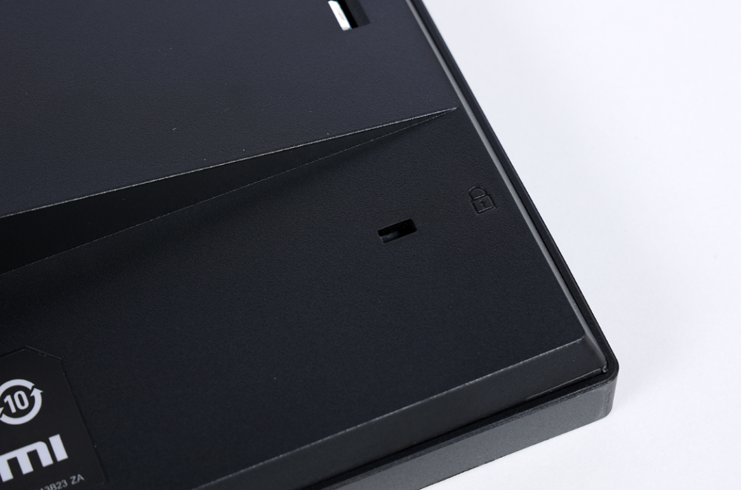 显示器背部的右下角还提供一个隐蔽的物理防盗锁扣;