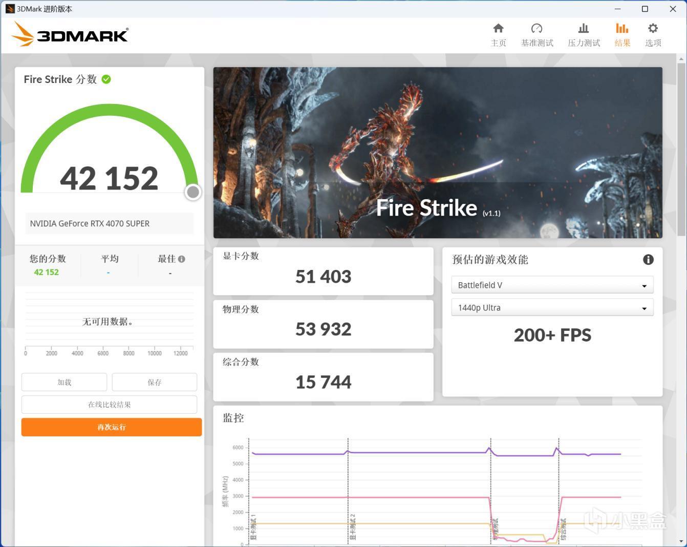 而在DX 11渲染项目中的Fire Strike跑分里,我们的iGame GeForce RTX 4070 SUPER Vulcan OC 12GB获得了51000分以上的好成绩,在FSE得到了26103分的绝佳成绩,这已经与RTX 4070 Ti相差无几了!