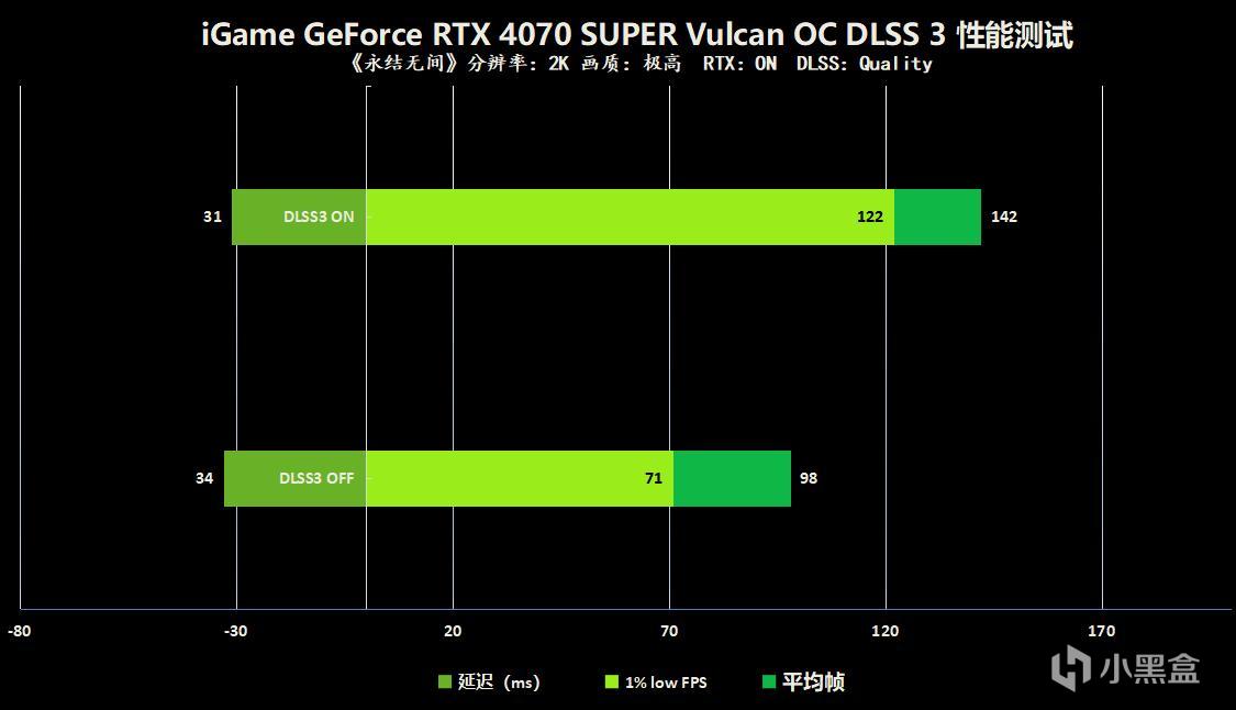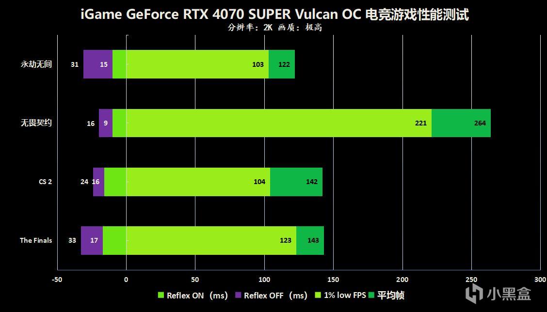 看完了理论性能测试后,我们发现RTX 4070 SUPER相比RTX 4070的理论性能提升非常可观,我们拿到的iGame GeForce RTX 4070 SUPER Vulcan OC 12GB具有“一键超频”模式,我们将超频开关开启后进行游戏表现的测试,我们选择了一些比较热门的电竞网游以及市面上火爆的3A大作,NVIDIA官方称RTX 4070 SUPER可以提供无与伦比的1440P游戏体验,所以我们把游戏的分辨率设置为1440P并且画质调整为极高,相信不少玩家都在使用1440P,快来看看你喜欢的游戏在这款显卡上的运行帧数是多少吧~!