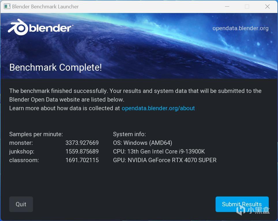 在Blender 4.0的三个基准测试场景里,我们的iGame GeForce RTX 4070 SUPER Vulcan OC 12GB都获得了非常好的分数,怪兽场景得到了3373分,旧货店得到了1559分,教室场景得到了1691分,总分已经极为接近RTX 4070 Ti了!