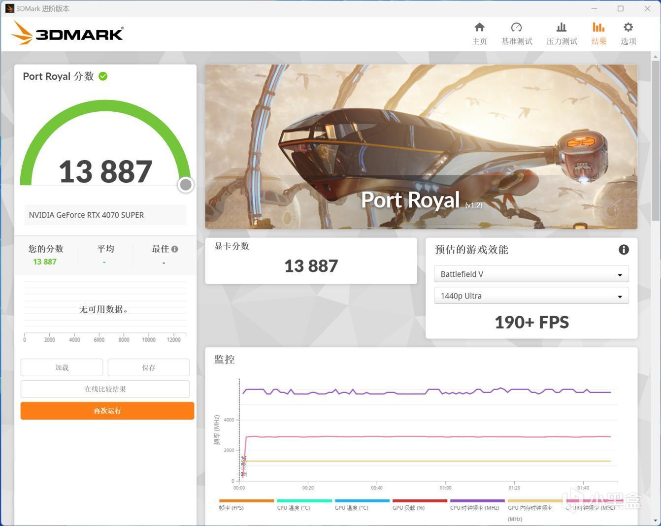现在有极多的玩家开始在游戏中开启RTX光线追踪技术了,作为次世代游戏的标配,RTX 40系显卡的光追能力是十分强悍的,我们在实时光线追踪测试Port Royal中iGame GeForce RTX 4070 SUPER Vulcan OC 12GB显卡最终斩获13887分,同样十分接近前辈RTX 4070 Ti,光线追踪实力非常可观!