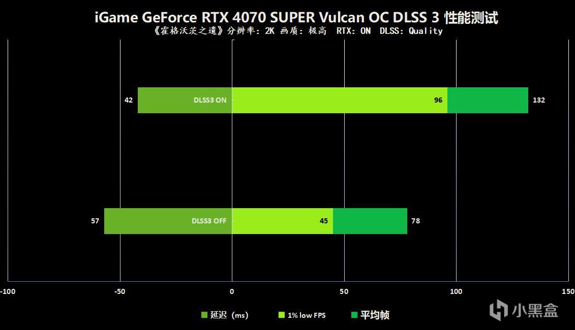 《霍格沃茨之遗》是哈利波特宇宙的一款开放世界大作,游戏支持光线追踪和DLSS 3,为玩家呈现了中世纪奇幻的魔法世界,DLSS 3 ON后,游戏帧数从之前的78FPS上涨至132FPS,1%LOW FPS正好达到了一倍增长,游戏的流畅度大大提高。