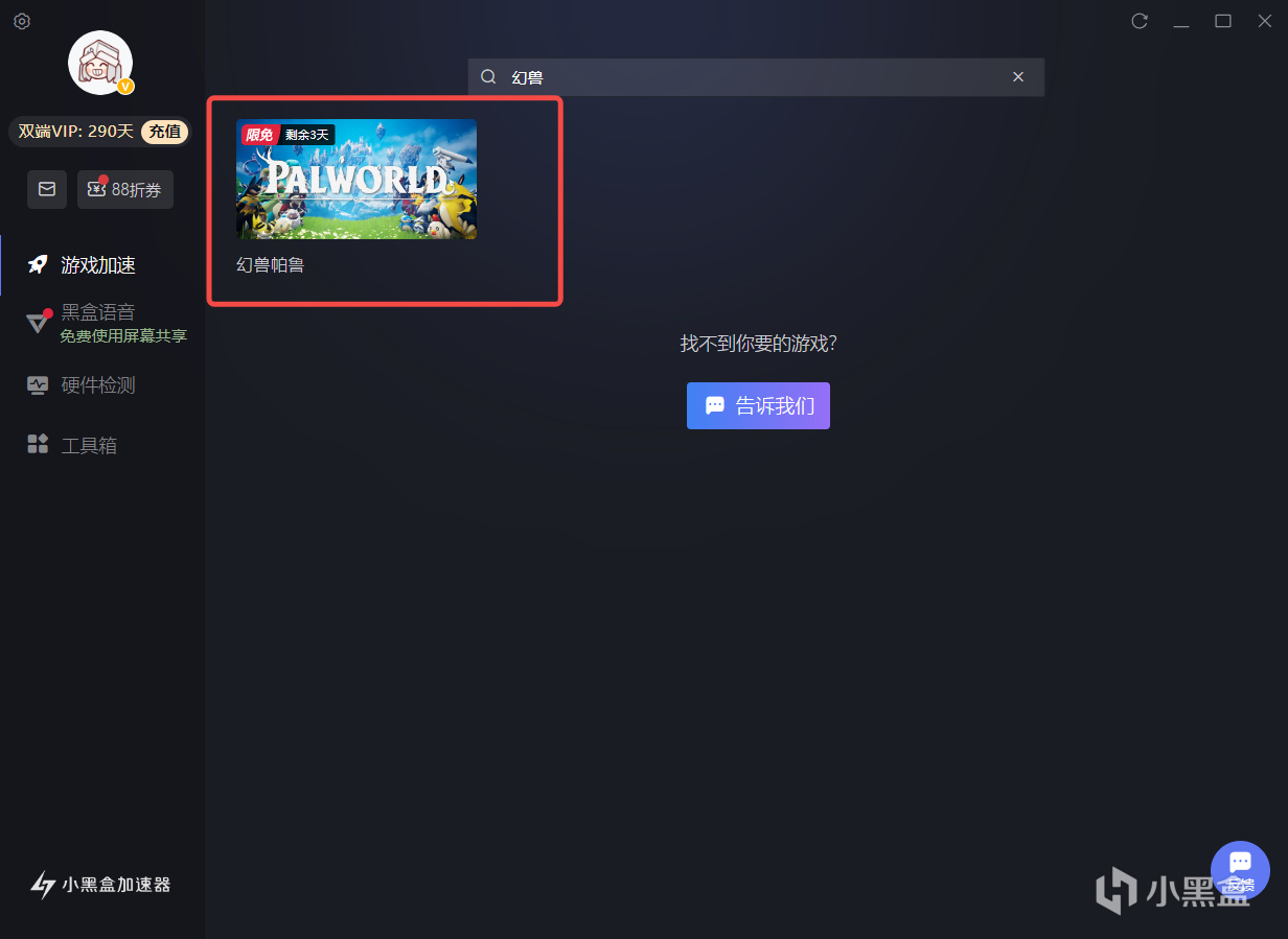 目前小黑盒加速器已经开启《幻兽帕鲁》三天限时免费加速,欢迎各位盒友前来体验。