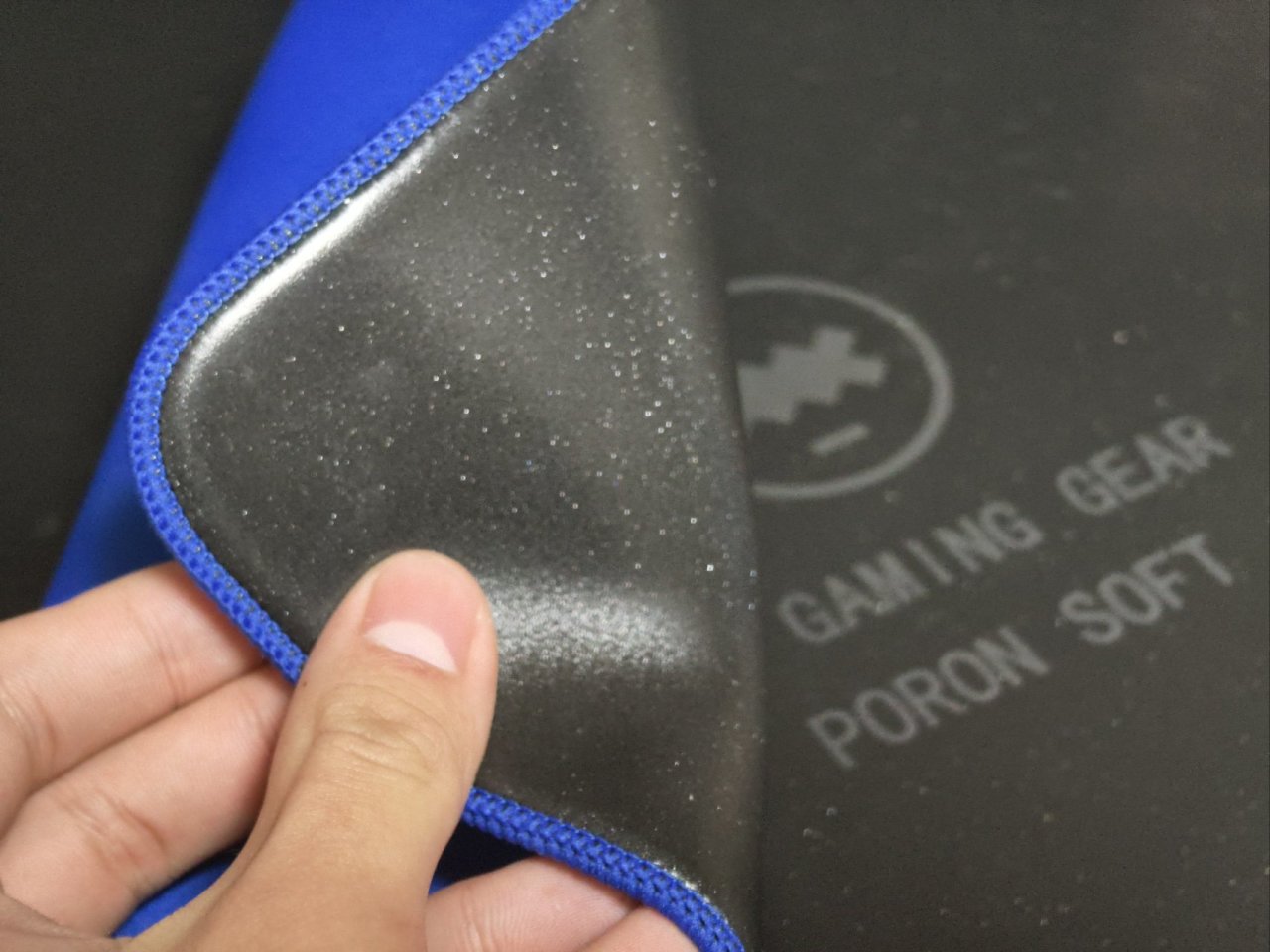 底胶方面采用了镜面的井上PORON底胶,表面应该加了闪粉,看起来布灵布灵的,很闪,上方还特地印着准枪他家的LOGO,大家应该也都有所听说过井上PORON,不少高端的鼠标垫都是以他为底胶,摸起来呢略微黏手,可以牢牢地将垫子固定在桌面,所以说鼠标在鼠标垫上进行大幅度的移动过程中去,不会出现拖拽偏移的现象,底部的摩擦力很强,较为稳固,可以紧贴在桌面上。软度方面为soft,回弹的速度很快,也因此对于手臂的支撑也不错,在长时间的游玩中也可以尽大幅度的保持你整体的舒适感,让你状态保持完好。