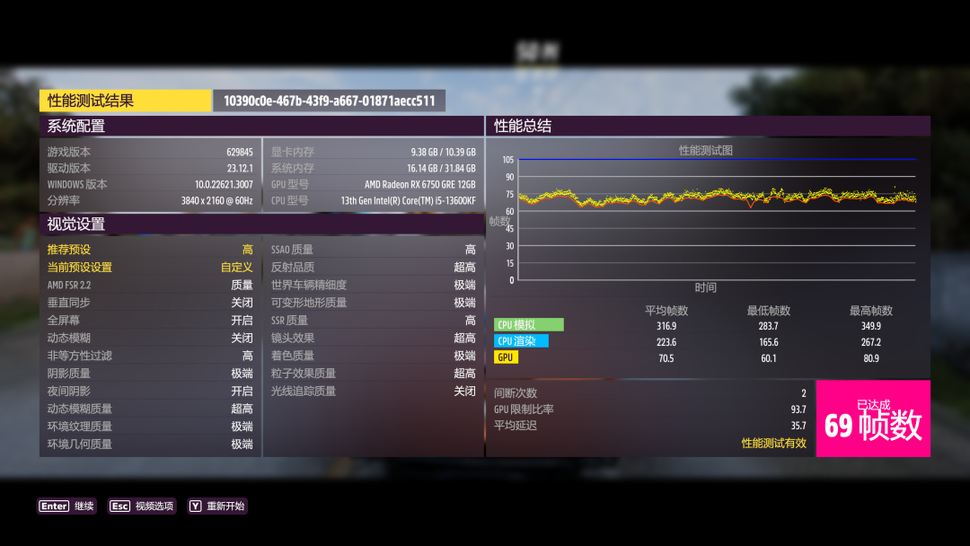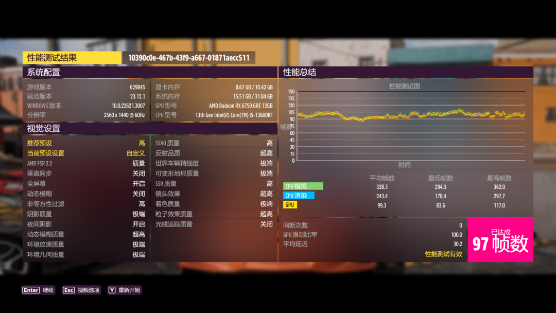 畫質設置最高“極端”,光追關閉,FSR設置爲“質量”,2K 97幀,4K 69幀: