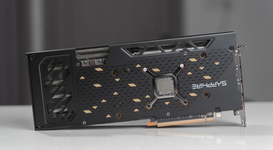 背板同樣運用了黑金元素和鑽石紋理,突出“黑鑽”主題,值得注意的是,這塊顯卡不帶RGB燈,沉穩大氣的黑金色系,非常適合用在黑色機箱中,同時也是無光黨的最愛。