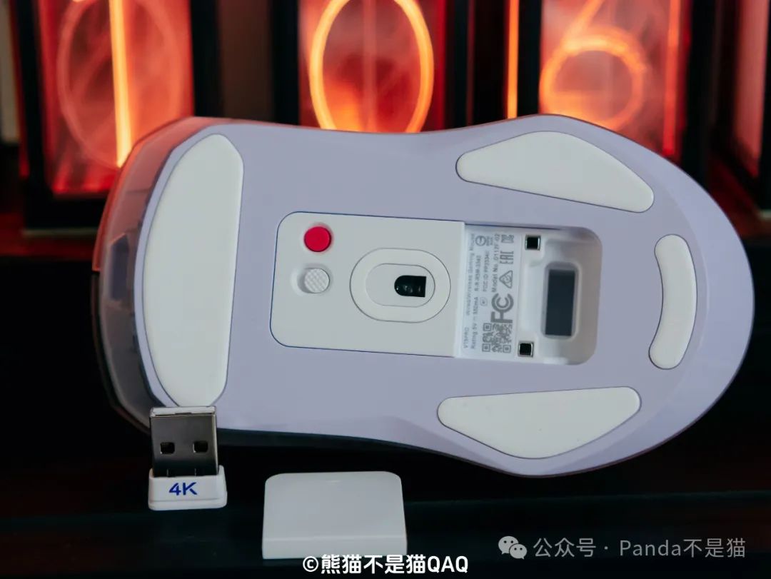 但看顏值和設計,已經能吸引你繼續看下去了,那麼我們進一步深入研究它的參數性能。作爲雷柏VT9 pro的進階版本,進階地方到底在哪兒呢?最最重要的便是雙高速這個字眼了,出廠就附帶nano 4K接收器,相比上一代要另外購買這一點好太多,同時上一代的4K接收器也更爲大,並不能收納到鼠標中,而雷柏VT9 pro高速版這次將它做得更爲小巧,同時也保留了用於電量顯示的RGB指示燈,怎麼看都是一大步升級。