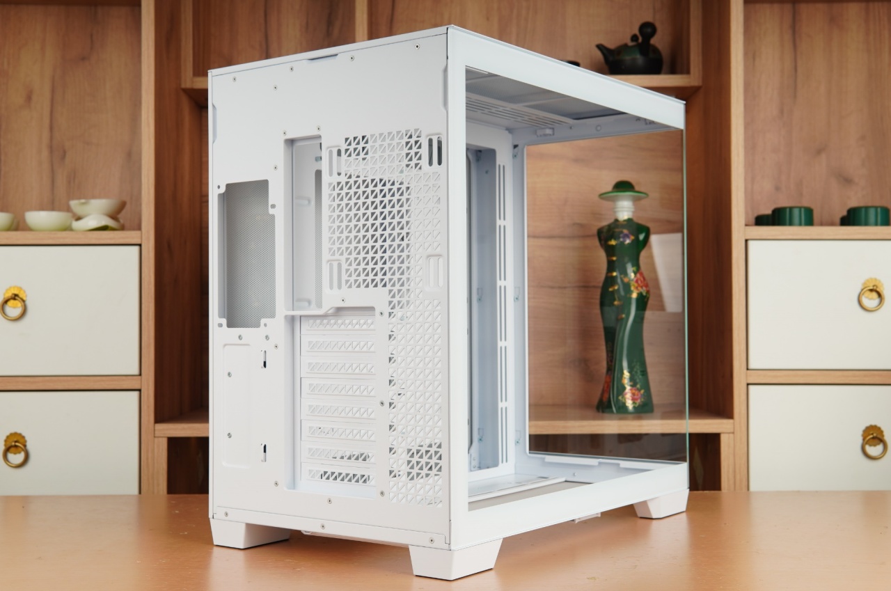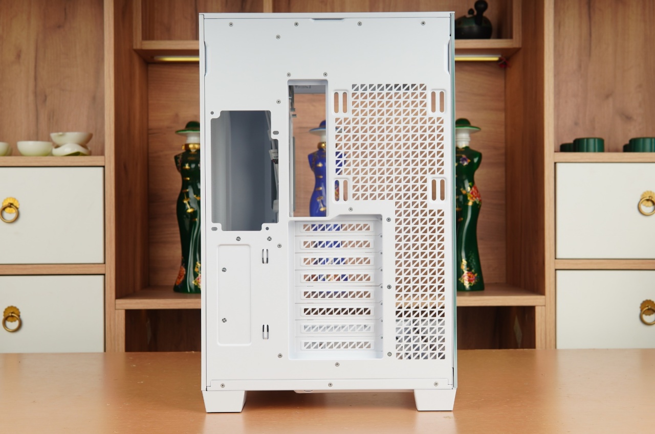安钛克星际C8的背板比较少有的采用了全MESH面板设计,背部看起来很通透,并且这也保证了安钛克星际C8拥有出色的散热效能。