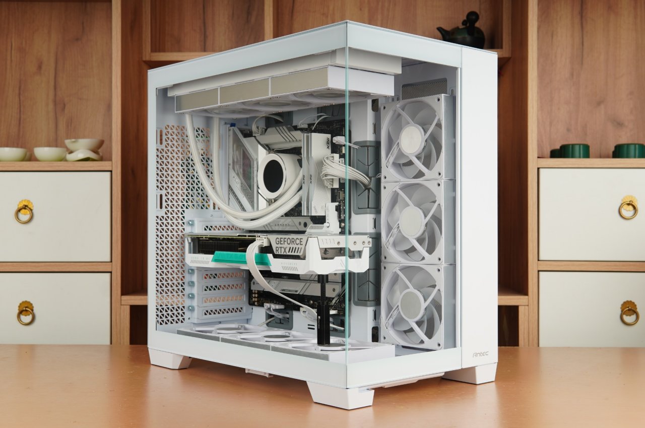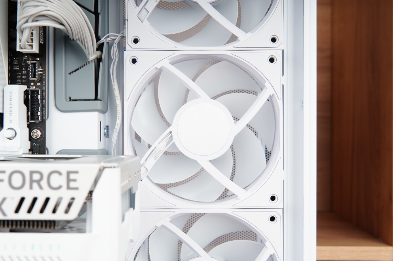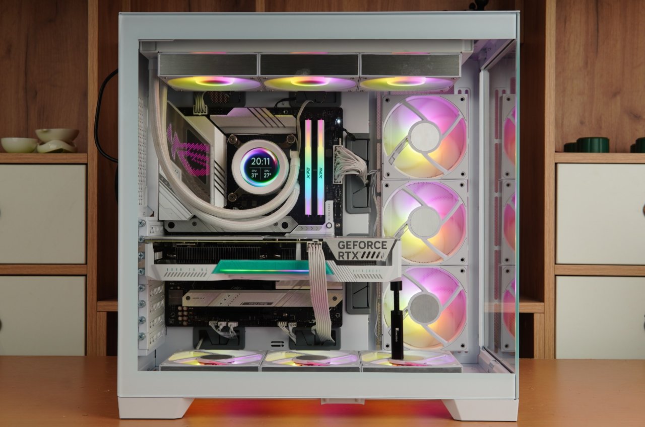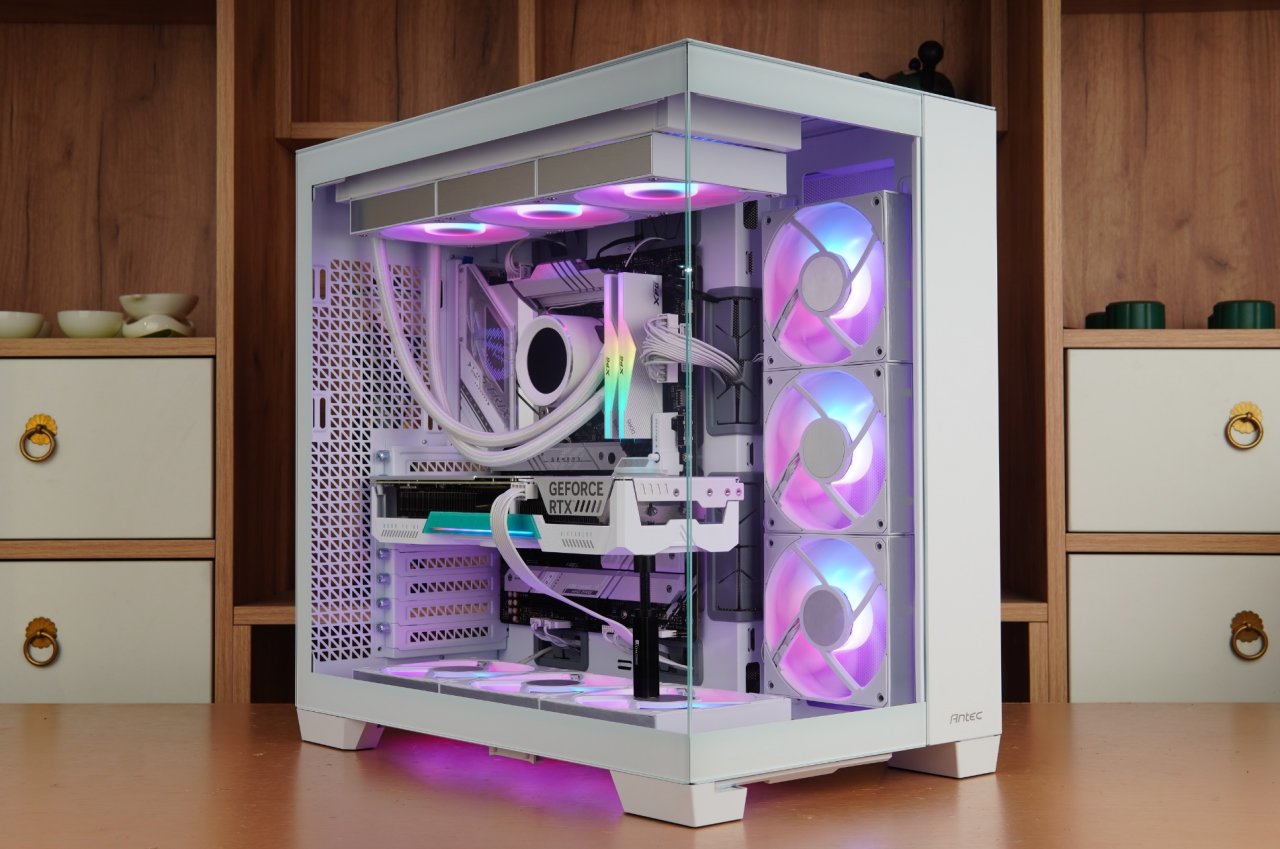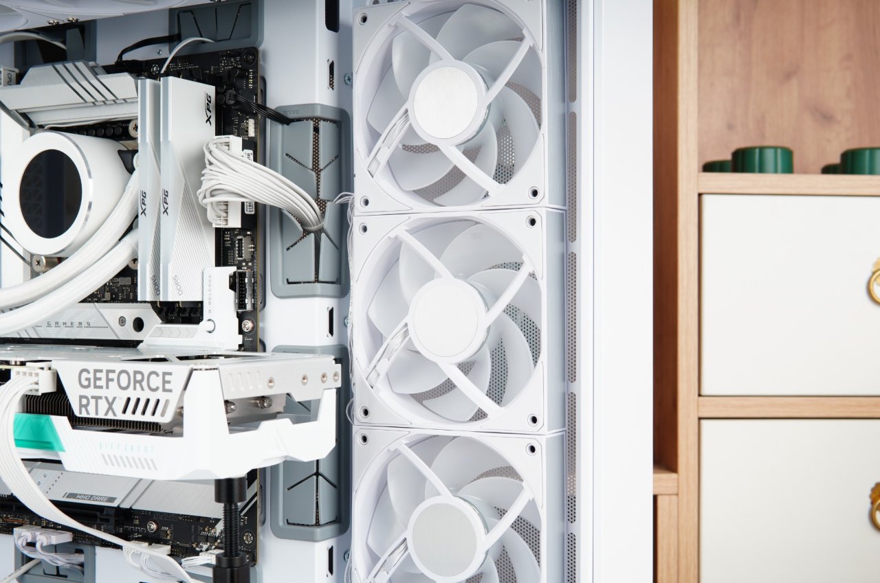最后的装机效果我个人还是相当满意的,白色版的安钛克星际C8搭配同为白色的PC组件很容易就能形成一台高颜值的主机,并且主仓可以同时透露出多把RGB风扇的灯效,光污染几乎是拉满了。下面就来看看这套配置的散热效果到底如何。