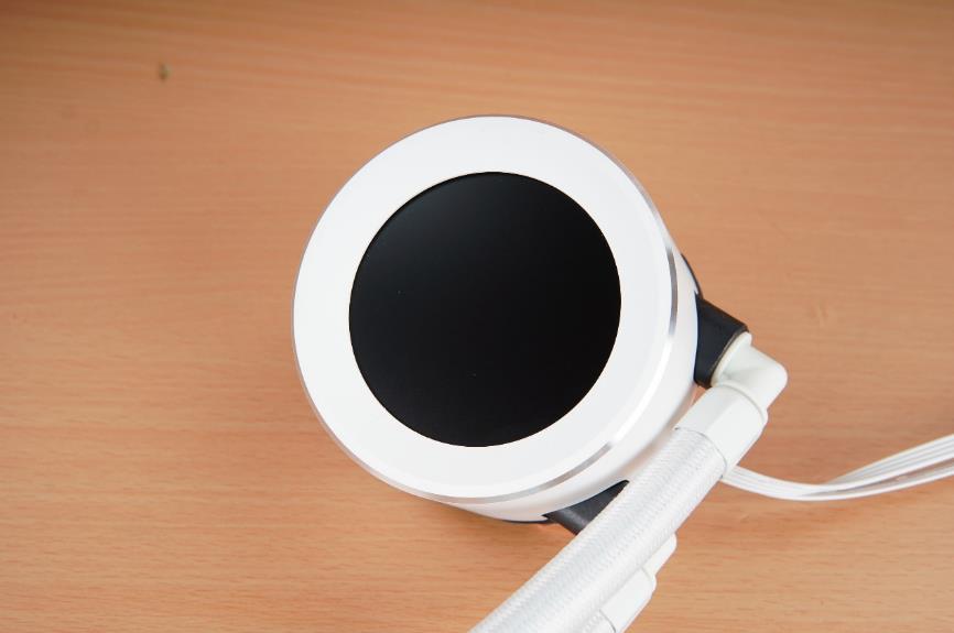 先马XW360系列水冷散热器最大的亮点就是冷头带有一块2.1寸,480×480分辨率的IPS LCD全彩屏幕,得益于如此高的分辨率其显示效果细腻度非常的高。冷头本身的用料做工也很高端,采用了全铝合金CNC上盖,加上高光装饰纹理,整体的质感相当精致。