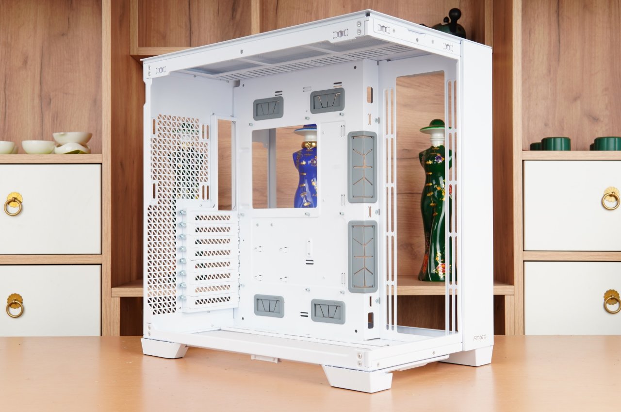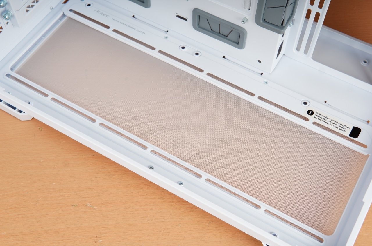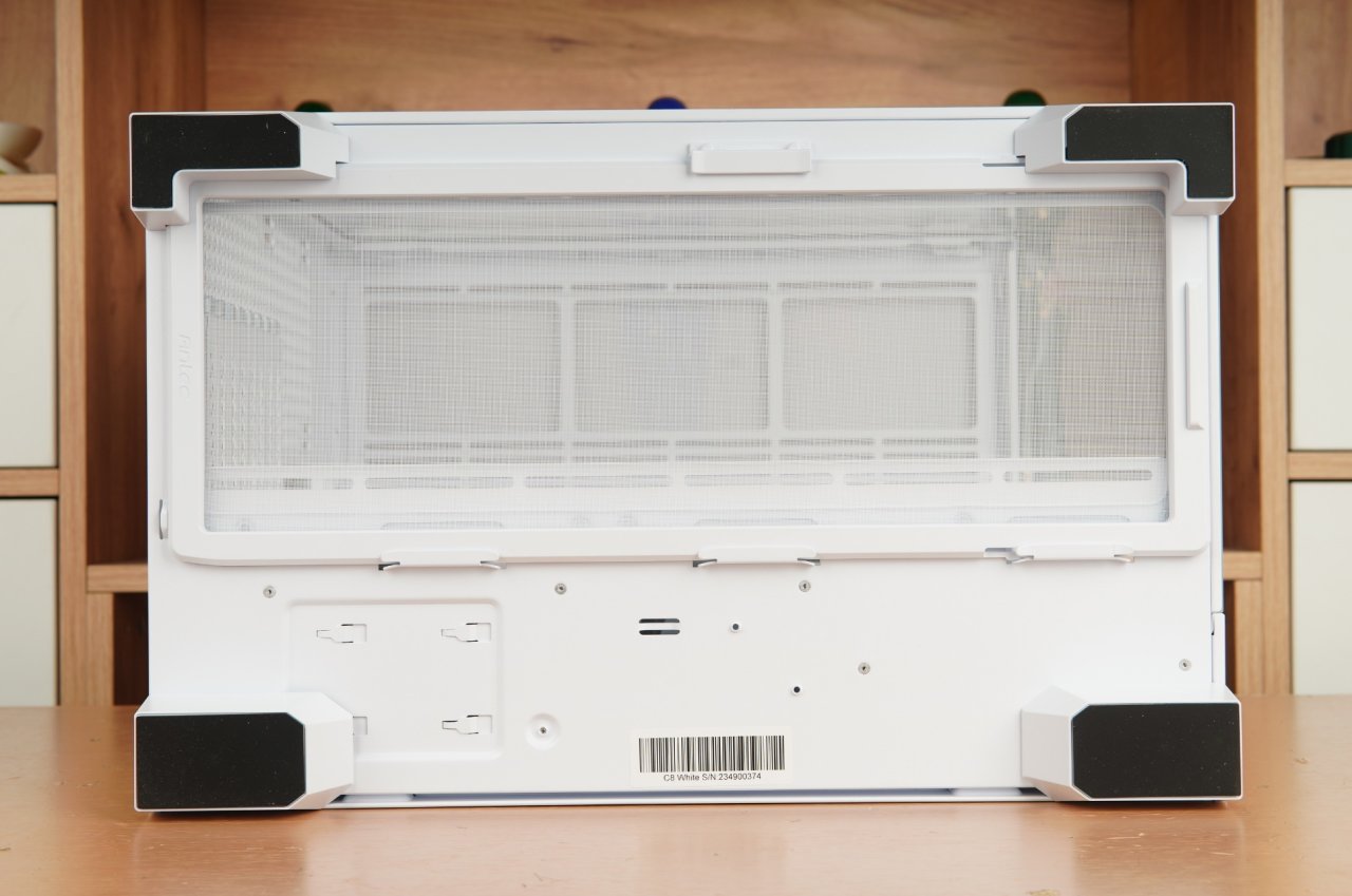 安钛克星际C8机箱底部创新性得采用了无遮挡设计,完全镂空,常见的底部面板被挖空了一大块,当然了,依然是可以支持风扇安装的。