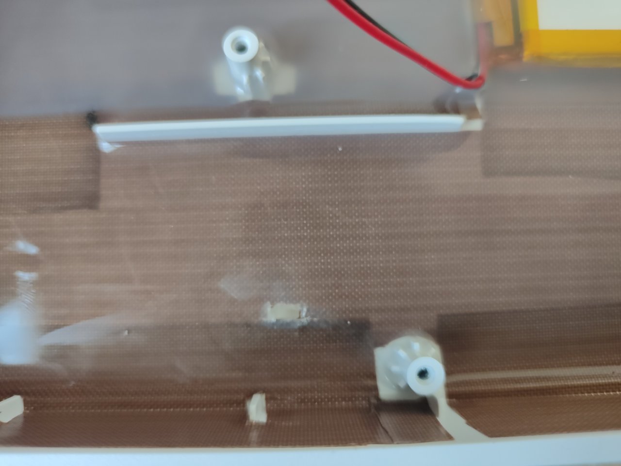 买回一卷窄一些的特氟龙胶带,一卷就足够用了,将特氟龙胶带贴在底壳底部,一层就足够了,允许中间有缝隙,尽量不要出现胶带叠层。第一,窄一些是为了绕开限位柱,这样好进行裁剪。第二贴在底部可以有效吸收敲键盘的声音,削减声音传到桌子上。第三不叠层是为了后续硅胶底垫做准备。