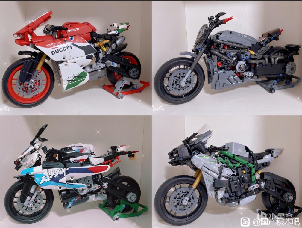 潘洛斯家的摩托系列算是比較優秀的(指價格)除了杜卡迪外,寶馬、川崎等等品牌也都有涉獵。他們的問題在於,十字插銷鬆緊不一,有些部分需要大力出奇跡,部分面板磚塊有明顯的水紋。但是國產積木一貫如此,所以emmmn