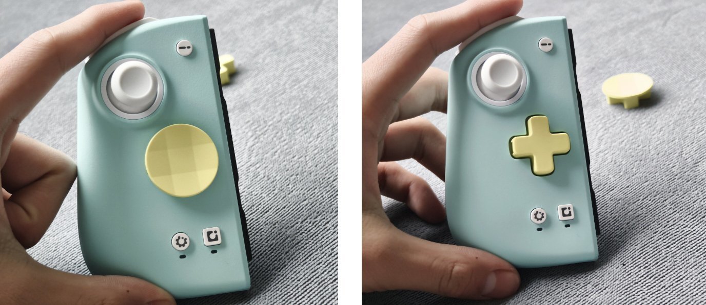 欧克,现在终于可以给大家聊一聊十字键方面了,十字键你也可以进行一个更换,适配的游戏更多样嘛!比如说八向十字键适合游玩格斗游戏,体验上面会更好。