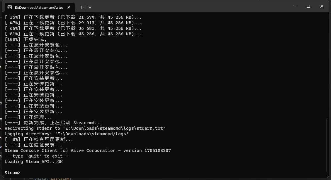 下載完成後,解壓到你需要安裝的目錄,然後運行steamcmd.exe文件就可以了。