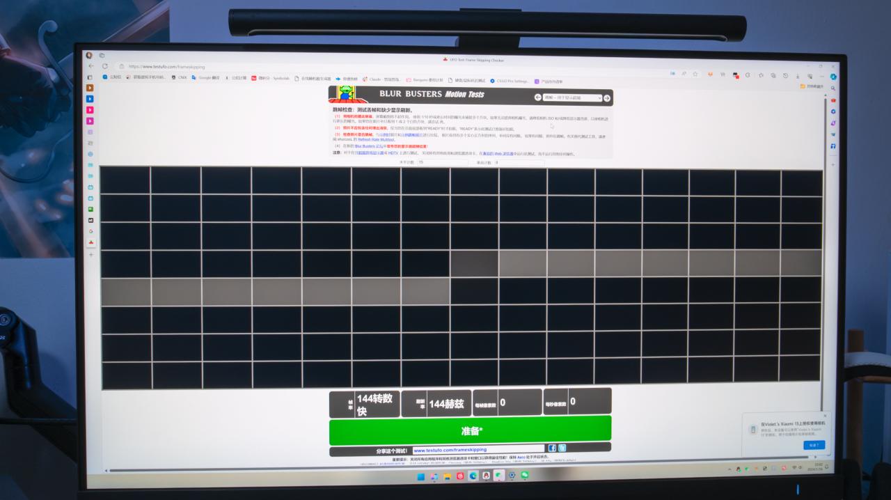 刷新率测试,使用1/10快门下拍摄,输出144Hz下无跳帧现象。