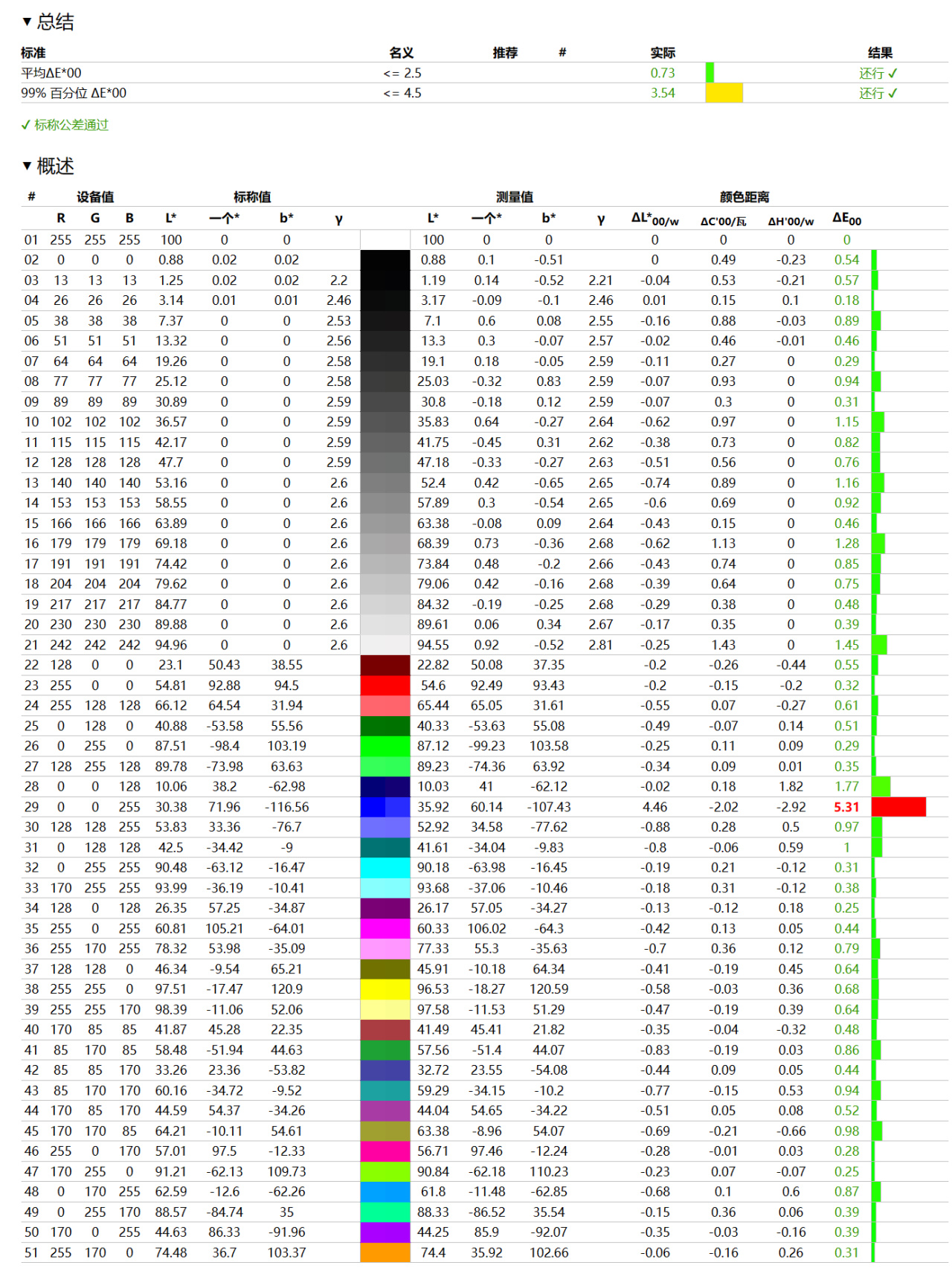 不过官方提供的校色报告中的校色样本数量较少,因此这份报告所提供的数据只能作为参考,不完全代表实际使用情况。