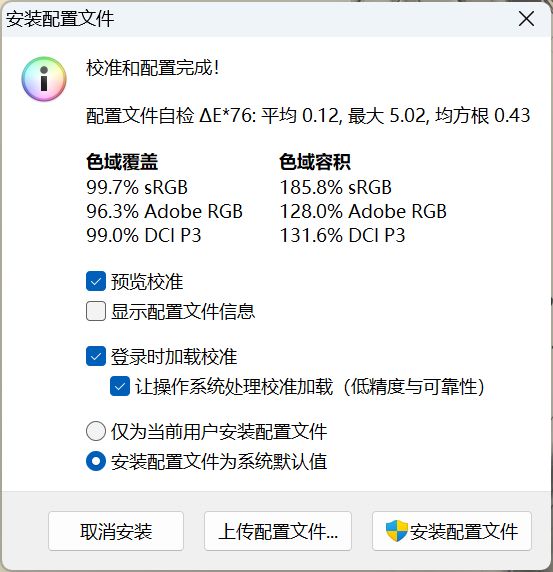 使用DisplayCal配合Spyder X Elite对显示器进行色域测试,测试结果如下: