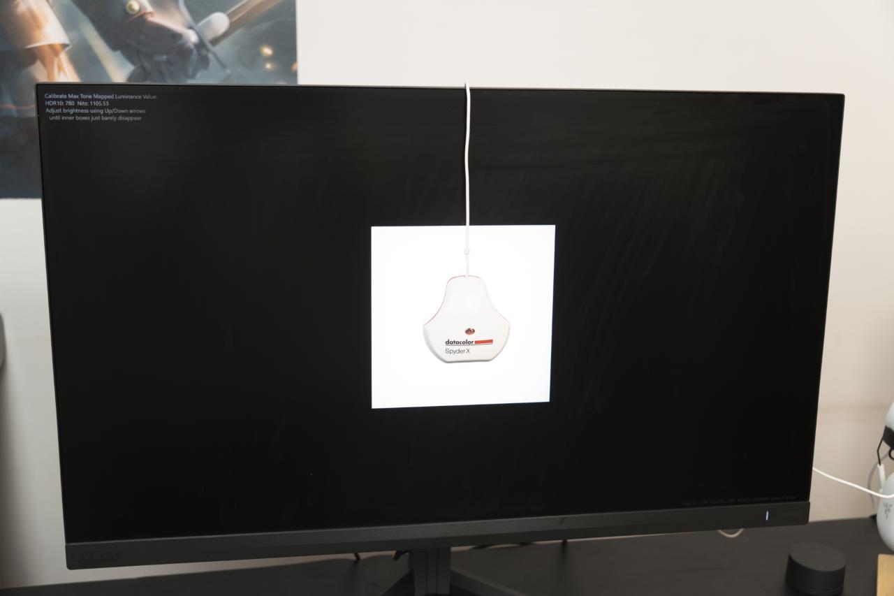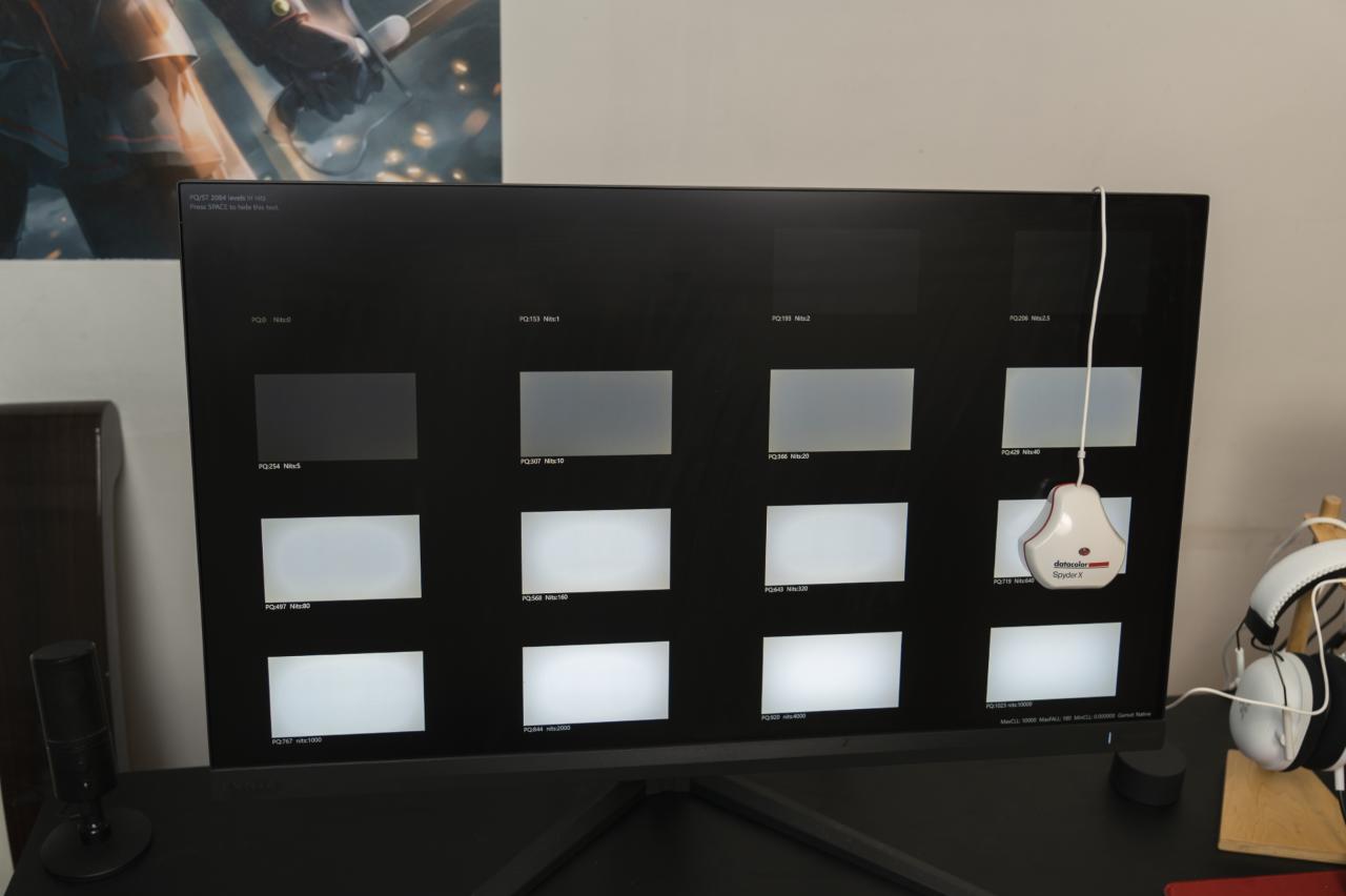 使用VESA Display HDR认证测试软件Display HDR Compliance Tests配合Spyder X Elite和Display Cal对屏幕进行亮度和对比度测试。