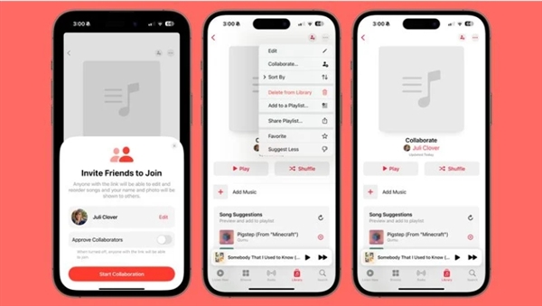 协作播放列表允许您邀请朋友加入您的播放列表,每个人都可以添加、重新排序和删除。